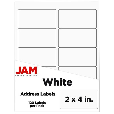 JAM Paper Address Labels, 2" x 4", White, 10 Labels/Sheet, 12 Sheets/Pack (4062901)