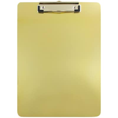 Use JAM Paper Gold Clipboard Aluminum Clipboards to hold your papers in place! Whether you are on the go or at a desk, this gold aluminum clipboard with a strong silver metal clip allows you to keep papers organized and write on any surface. With black plastic covered corners on the silver clip and durable yet light weight aluminum, carrying and using this clipboard is hassle-free. Teachers, coaches, students and all professionals love how efficient our clipboard is! However you choose to use, expect high quality performance.