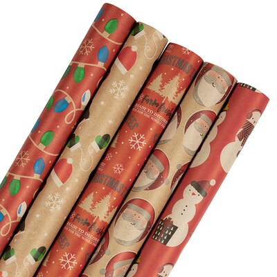 JAM Paper® Kraft Wrapping Paper Rolls - 125 sq ft. - Kraft Christmas Set - 5 Rolls/Pack