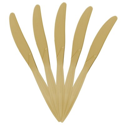 JAM PAPER Big Party Pack of Premium Plastic Knives, Gold, 100 Disposable Knives/Box