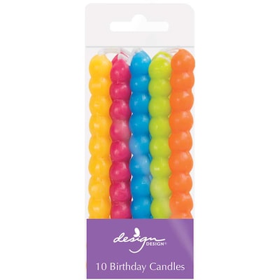 - Quantity: 10 candles (2 or each color) 5 colors: Yellow, Fuchsia, Blue, Green & Orange