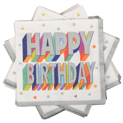 JAM PAPER Birthday Party Beverage Napkins, 5 x 5, Colorful Confetti, 16 Napkins/Pack