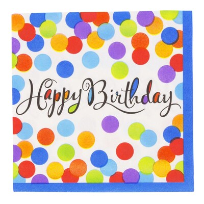 JAM PAPER Birthday Party Beverage Napkins, 5 x 5, Confetti Bash Design, 36 Napkins/Pack