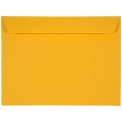 JAM Paper Sunflower Yellow 9 x 12 Booklet Envelopes are made out of smooth, high quality, 28lb paper. The 9 x 12 inch size of these envelopes makes them ideal for enclosing standard sized sheets of paper without bending or folding. Each one features a straight flap with a reliable gum closure. This pack contains a total of 50 envelopes. Use these envelopes for sending documents forms, files, letters, manuscripts, manuals, and more through the mail! The bright and summery sunflower yellow color of these envelopes is guaranteed to help you mail items get noticed by any recipient. Size: 9inx 12in | Color: Sunflower Yellow | Quantity: 50