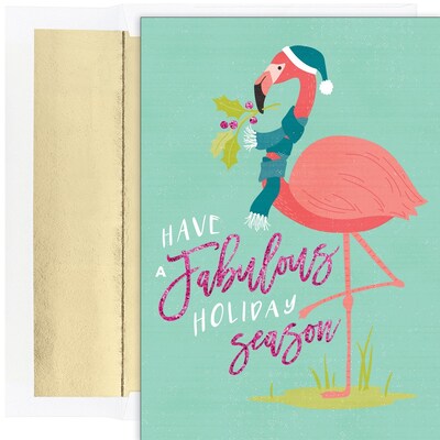 JAM PAPER Christmas Cards & Matching Envelopes Set, 7 6/7" x 5 5/8", Fabulous Flamingos, 18/Pack (526940800)