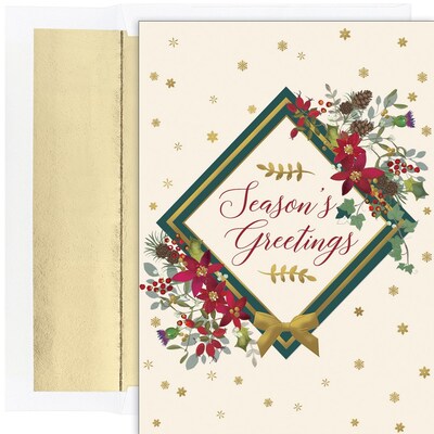 JAM PAPER Christmas Cards & Matching Envelopes Set, 7 6/7" x 5 5/8", Seasons Floral, 18/Pack (526936600)
