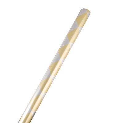 JAM Paper Silver and Gold Argyle Christmas Wrapping Paper Roll is sold individually and contains 12 square feet of gift wrap. This wrapping paper features a bright, shining finish and a gold and silver argyle pattern. This festive and dazzling wrapping paper is excellent for wrapping gifts for any recipient! Its classic pattern is sure to impress any family or member or friend. Its shiny appearance causes it to stand out any setting! This beautiful, high quality wrapping paper will not tear easily, which allows you to wrap gifts tightly and neatly. Use this wrapping paper for the next upcoming holiday season.