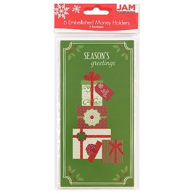 JAM Paper® Christmas Holiday Money Card Set, Seasons Greetings Gifts, 6/pack (95231613)