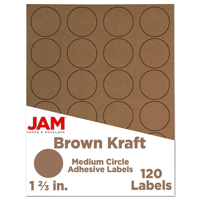 JAM Paper Circle Round Label Sticker Seals, 1 2/3 Inch Diameter, Brown Kraft, 120/Pack (3147612192)