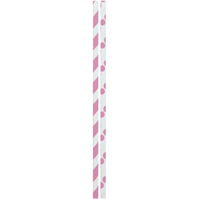 JAM Paper® Color Paper Straws, 7 3/4 x 1/4, Pink Stripes and Dots, 24/Pack (52662006970)