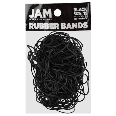 There is one color that will never go out of style no matter the year or the season. That color, of course, is black. JAM Paper® Black Rubber Bands are no exception to this fact. Whether you need them for your office, your home, or your office, these black rubber bands will help you stay tidy and organized while looking sharp! This pack contains a total of 100 rubber bands. Each one is size #19. Made out of durable and flexible rubber, these reliable rubber bands can be wrapped around piled of envelopes or files, closed boxes, groups of pencils, piles of brochures, bags that have been opened, and more to keep them together and secure.
