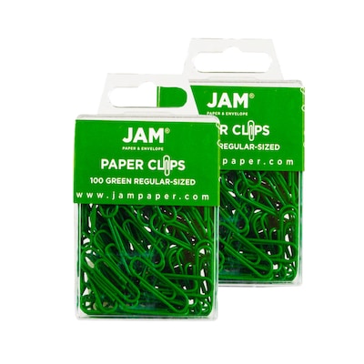 JAM Paper® Colored Standard Paper Clips, Small 1 Inch, Green Paperclips, 2 Packs of 100 (2183752a)