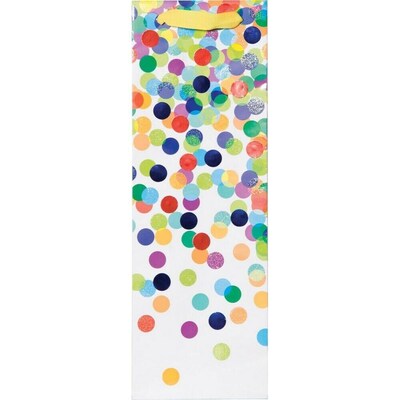 JAM PAPER Wine Design Bags measure 4 3/4" x 13 7/8" x 3 7/8". These bags feature a "Dazzle Brights" design and are sold in a pack of 3. Use these wine bottle bags for all your gifting needs. Perfect size to fit any bottle of wine.