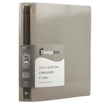 JAM Paper® Smoke Grey Plastic 3 Ring Binder features a glass twill finish and 50% more storage space than the standard 1inch binder. Made to fit conveniently in a backpack or your workplace shelves, these folders are perfect for keeping your papers and files organized at school or at the office. Their lightweight yet durable material also makes them ideal for protecting your files as you transport them from class room, to board room, and beyond. Each binder features a pocket and business card slot on the inside left cover for extra storage and organize convenience. Size: 10.4in. 0.8in. x 11.6 in. | Color: Smoke Grey | Quantity: 1 (sold (individually)