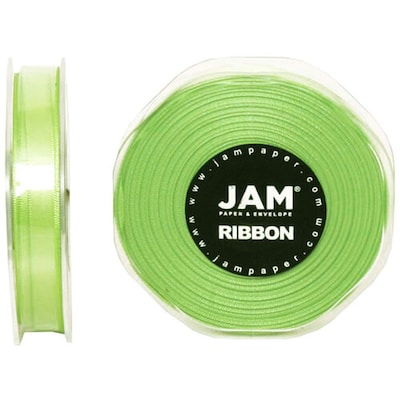 JAM Paper® Double Faced Satin Ribbon, 3/8 inch Wide x 25 yards, Lime Green, Sold Individually (803SAappgr25)