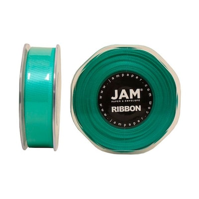 JAM Paper® Tiffany blue satin ribbon is double faced, has a glimmering texture and brilliant shine to give your gifts a sophisticated charm and measures 7/8" x 25 yds.