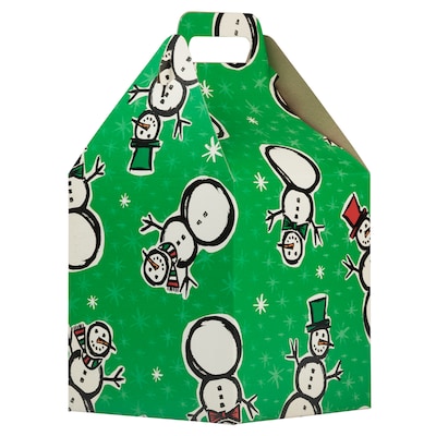 JAM Paper® Large Green Snowman Design Gable Gift Box with Handle is a great way to package Christmas gifts and goodies to be given away! Each box features a square bottom and a triangular top with slits and tabs for secure self-closing. With its wintery and festive pattern, this box is perfect for those Christmas cookies for your co-workers or for the rum balls your baking for your family holiday party. Each box is 8 x 7.25 x 8 inches in size. Equally useful for non-edible gifts, these boxes are the perfect size to hold scarf and glove sets, snow globes, and more! (Sold Individually) Size: 8in.x 7.25in. x 8in. | Color: Green Snowman | Quantity: 1 (sold individually)