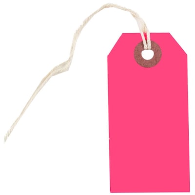JAM Paper® Gift Tags with String, Small, 3 1/4 x 1 5/8, Neon Pink, 100/Pack (91931046B)