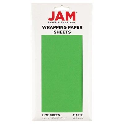 JAM Paper Gift Wrap, 25' x 20", Lime Green, 6/Pack(2770135262LI)