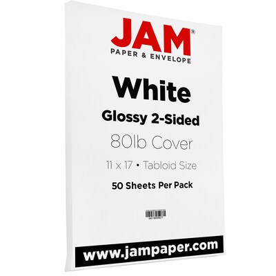 JAM Paper Glossy 2-Sided Tabloid Cardstock, 80 lb., 11" x 17", White, 50 Sheets/Pack (236937597)