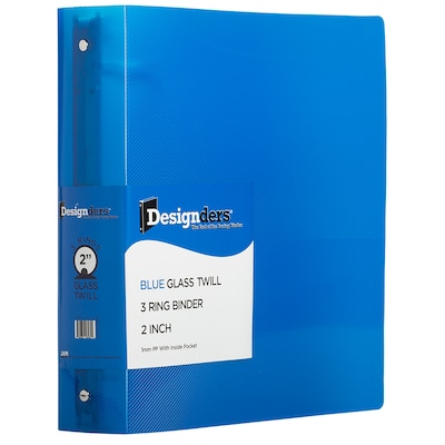 - Binders are made from durable flexible plastic, are 3-ringed, and have a unique ridged glass twill finish!