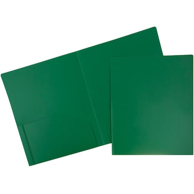JAM Paper® Green Heavy Duty Plastic Two Pocket Presentation Folders are made from smooth, durable, heavy duty plastic and measure 9 x 12 inches in size when closed. On the inside, each of these folders features two pockets, one on each side. Within the right-side pocket, there is a slit for placing and securing business cards, brochures and other small papers that need to accompany your stored documents. The bold green color of these folders will bring some life and a pop of personality into your office or work space! Stare them in desk drawers, lockers, on shelves and in cabinets, or carry them from place to place in bags or briefcases. This pack contains 6 folders!