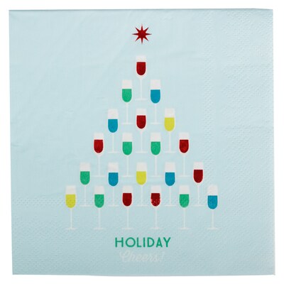 JAM PAPER Holiday Christmas Cocktail Napkins, 4 3/4" x 4 3/4", Blue Wine Glass Tree, 20/Pack