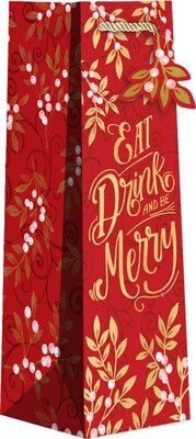 JAM PAPER Bottle Design Bags measure 4 1/2" x 14 x 4 1/2". These bags feature a Holiday Floral design and are sold in packs of 120. Perfect size to fit any bottle of wine. Use this wine bottle bags for all your gifting needs.