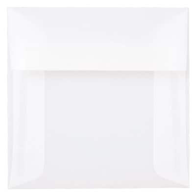 JAM Paper® 5" x 5" clear translucent envelope in a pack of 25 is perfect for greeting cards, invitations or any other announcements and is made from natural vellum paper.