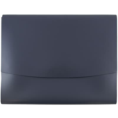 JAM Paper® Navy Italian Leather Portfolios with Snap Closure measures 10.5 x 13 x 0.75 inches in size and features a dark, professional, navy blue color. This high quality portfolio is sold individually and is constructed from smooth, genuine Italian leather. Each one has a wide, rounded straight flap closure that overlaps most of the front panel. To keep the contents placed inside this portfolio securely in place, it features a reliable metal snap closure. Use this portfolio to store, carry, and protect important documents, files forms, paperwork, manuals, catalogs, projects, resumes, and more!