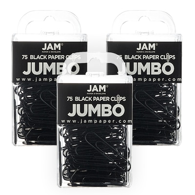 JAM Paper Jumbo Paper Clip, Black, 3 Packs of 75 (2184933B)