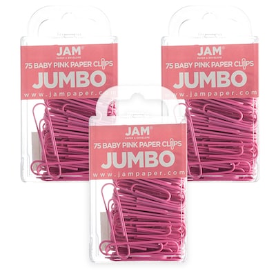 JAM Paper Jumbo Paper Clips, Pink, 3/Pack (42186873B)