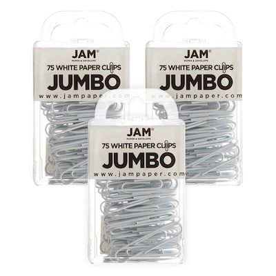 JAM Paper Jumbo Paper Clips, White, 3 Packs of 75 (2184934B)