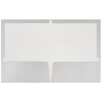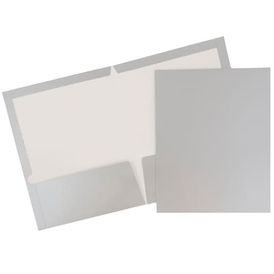 JAM Paper® Laminated Two-Pocket Glossy Presentation Folders, Silver, Bulk 50/Box (385GSIC)