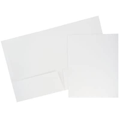 JAM Paper® Laminated Two-Pocket Glossy Presentation Folders, White, 25/Pack (385GWHD)