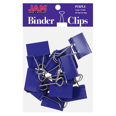JAM Paper® Binder Clips, Large, 41mm, Purple Binderclips, 12/pack (340BCpu)