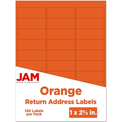 JAM Paper Laser/Inkjet Mailing Address Label, 1" x 2 5/8", Orange, 30 Labels/Sheet, 4 Sheets/Pack (302725782)