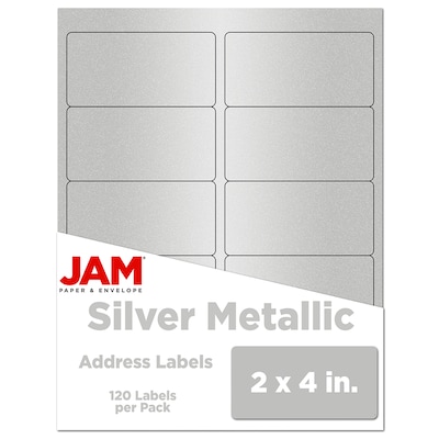 JAM Paper Laser/Inkjet Shipping Address Labels, 2" x 4", Silver Metallic, 10 Labels/Sheet, 12 Sheets/Pack (40732539)