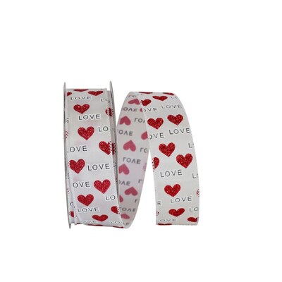 Jam Paper Love Hearts Ribbon, 1.5" x 60', White Glitter (52640340664)