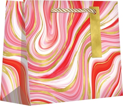 JAM PAPER Large Design Bags measure 12 1/2" x 10" x 5". These bags feature a "Marbleized Red" design and are sold in a pack of 120. Perfect size for any larger sized gifts this year! Use these large bags for all your gifting needs.