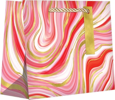 JAM PAPER Medium Design Bags measure 10" x 8" x 4". These bags feature a "Marbleized Red" design and are sold in a pack of 120. Perfect for any medium sized gifts this time of year. Use these for all your gifting needs this holiday!