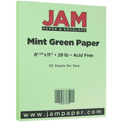 JAM Paper Matte Colored 8.5" x 11" Copy Paper, 28 lbs., Mint Green, 50 Sheets/Pack (16732385)