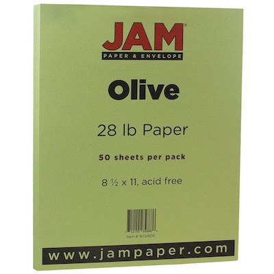JAM Paper Matte Colored 8.5" x 11" Copy Paper, 28 lbs., Olive Green, 50 Sheets/Pack (16729244)