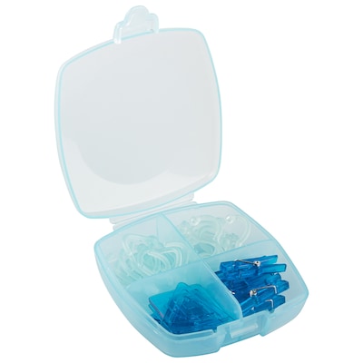 Do you handle important documents in your day-to-day job and feel like you can't keep track of them? Want an easy and stylish way to keep your documents together? Go with our Paper Clip Assortment Packs! These aren't your typical boring paperclips either. All of these are unique and are sure to make your papers stand out! Each set comes with different styles of paperclips, coming in different shapes and designs. Each box set has small compartments inside so that you can keep the different clips organized, and the box will easily fit in your drawer or on your desktop so that your workspace won't be cluttered. Size: Medium (2.5 x 2.75 in) | Color: Blue | Quantity: Box Sold Individually | 24 Clips Per Box