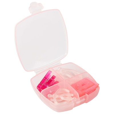 - Includes box with 4 compartments to help you organize and store these unique plastic clips