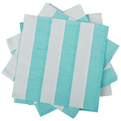 JAM Paper® Aqua Blue Stripe Medium Lunch Napkins add an extra touch of style to your party's tableware! Their classy hue and smooth texture will make these well-crafted 2-ply paper napkins an instant hit with you and your guests. They measure an even 6 1/2" x 6 1/2", providing the perfect size for serving with sandwiches, cake and entrées. They're also easily disposable, which will save you time from a tiring cleanup at the end of a long night! Each napkin is carefully designed to wipe up any drink or food spills, as well as grease smears on hands and faces.