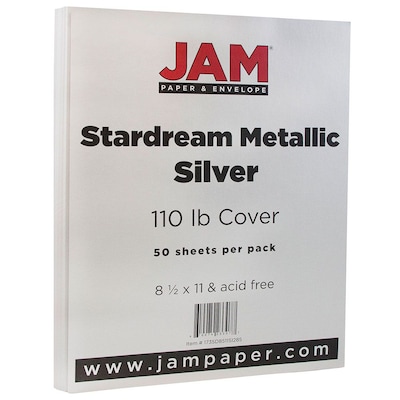 JAM Paper 110 lb. Cardstock Paper, 8.5" x 11", Silver Stardream, 50 Sheets/Pack (181137)
