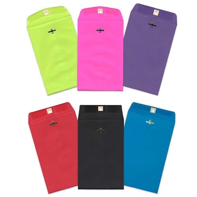 JAM Paper Assorted Color 6 x 9 Open End Catalog Clasp Envelopes are perfect for bringing a new level of color and organization to your office and mailing supplies! These envelopes measure 6 x 9 inches in size and are made out of smooth, 24lb paper. This assorted pack contains 6 colors with 10 envelopes of each color, for a grand total of 60 envelopes! The colors in this pack are red, blue, green, violet, ultra fuchsia, and black. Each of these envelopes features a straight flap with a reliable and easy to use metal clasp closure, as well as an optional gum closure for added reinforcement. Use these open end envelopes to mail documents, letters, cards, and more!