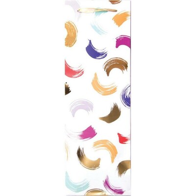 JAM PAPER Wine Design Bags measure 4 3/4" x 13 7/8" x 3 7/8". These bags feature a "Paint Studio" design and are sold in a pack of 3. Use this wine bottle bags for all your gifting needs. Perfect size to fit any bottle of wine.
