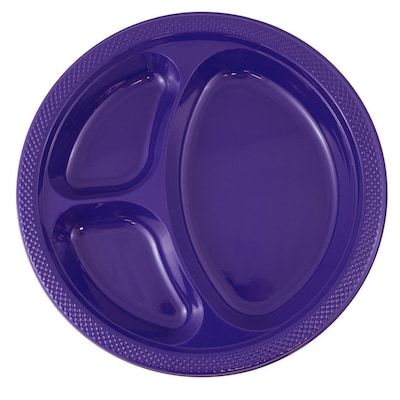 Plates With Convenient Compartments! JAM Paper Purple 3 Compartment Divided Plastic Party Plates offer a colorful and convenient option for any occasion. If you're throwing a fun party, barbeque, reception, banquet, or any other event, colorful plastic plates remove the chore of washing dishes while adding a pop of color to your decoration. These large plastic plates come in both divided 'compartment' plates or simple plan plates as well! Making them perfect for the kids, adults, or adults who like to have a little fun with their meals! Measuring 10.25 inches, these reusable plates are made of sturdy, smooth, plastic and sold in packs of 20.